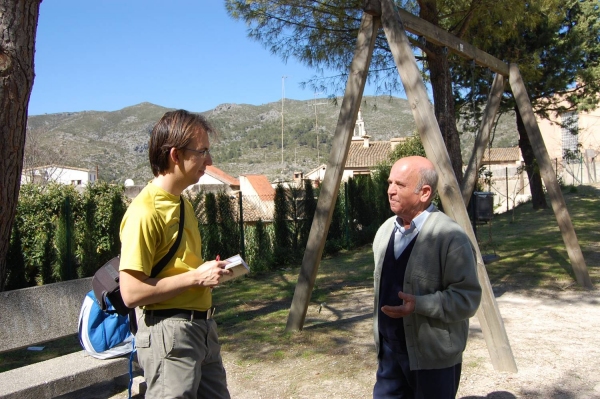 Damià Alemany, gran coneixedor dels camins de Benialí i Benissivà, explicant la toponimia dels camins de la serra de l'Almirant. 8 de març de 2009.